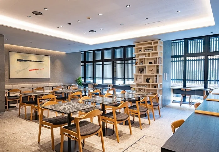 Aamusi alkaa hotellin valoisassa ravintolassa, jossa on runsas buffet-aamiainen sesongin raaka-aineista valmistetuilla japanilaisilla ja länsimaisilla suosikeilla. Päivän aikana ravintolassa on tarjolla myös pieni valikoima maksuttomia juomia.