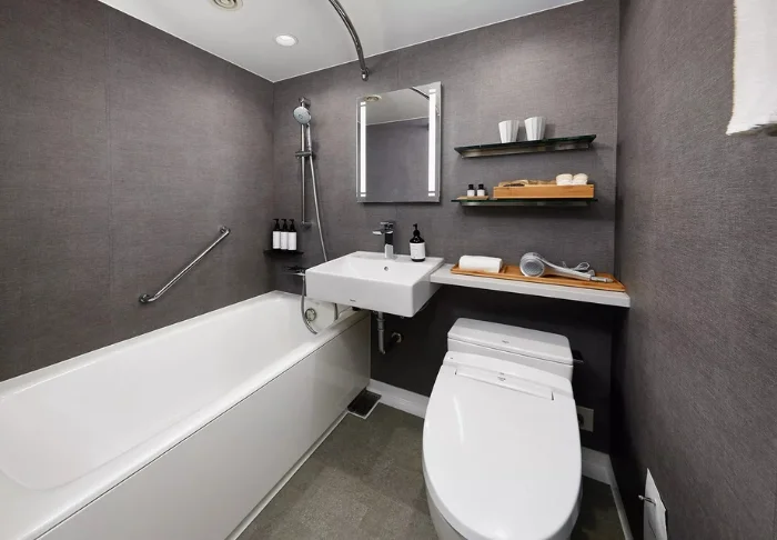 Majoitut lähtökohtaisesti standard-huoneessa, jossa on valoisa ja viihtyisä sisustus sekä nykyaikaiset mukavuudet. Huoneessa on WiFi, ilmastointi, TV, tallelokero, minijääkaappi, vedenkeitin teen ja kahvin valmistukseen ja käytävältä löytyvä suodatetun veden automaatti. Vuoteet ovat mukavat, ja voit valita sekä pehmeiden että kovien tyynyjen välillä saadaksesi levolliset yöunen. Kylpyhuoneessa on washlet-wc, hiustenkuivaaja, ilmaiset kylpytuotteet sekä erillinen sadesuihkulla varustettu suihkunurkkaus.