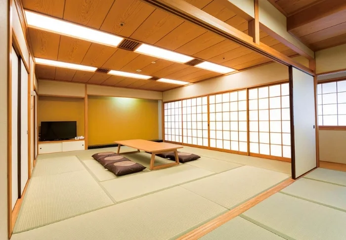 Hyvät yöunet takaa klassinen futonsänky. Huoneiden varustukseen kuuluvat lisäksi WiFi, ilmastointi, jääkaappi, TV, oma kylpyhuone ja matalalla sivupöydällä vedenkeitin, jolla voit valmistaa kupin vihreää matcha-teetä.