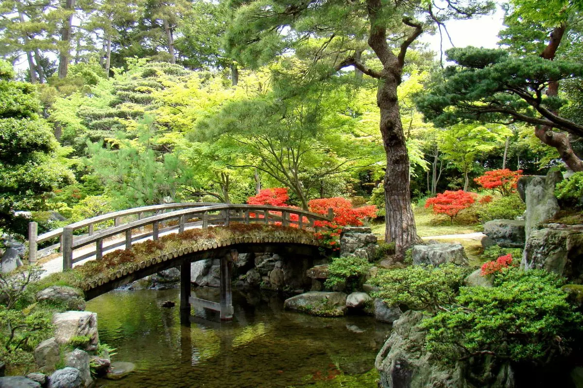 Seuraavaksi on vuorossa lähes 400-vuotias Kenroku-enin puisto, jonka sanotaan olevan yksi Japanin kolmesta kauneimmasta puistosta. Siksi se onkin erittäin suosittu vierailukohde. Nimi ”Kenroku-en” viittaa esteettisesti täydelliseen yhdistelmään vettä, tilaa ja rauhaa, jotka ovat kauniin japanilaisen puutarhan peruselementtejä.