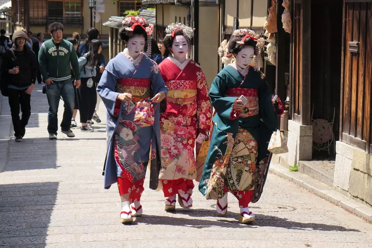 Katukuvassa näkyy paljon paikallisia turisteja perinteisissä kimonoissa. On yleinen tapa pukeutua silloin tällöin päiväksi kimonoon, ja tämä koskee niin naisia kuin miehiäkin. Kauniit asut tuovat katukuvaan väriä, ja etenkin nuoret ihmiset nauttivat pukeutumisesta silminnähden.