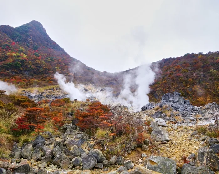 Seuraavaksi matka jatkuu Owakudanin laaksoon, aktiiviselle vulkaaniselle alueelle, jossa savupilvet nousevat näkyviin jo kaukaa. Ilmassa leijuu rikin tuoksu, ja lämmin, kostea tuuli muistuttaa alueen vulkaanisesta aktiivisuudesta. Täällä voit maistaa kuuluisia mustia kuro tamago –kananmunia, jotka kypsennetään kuumissa lähteissä kiehuvassa vedessä, ja paikallisen uskomuksen mukaan niiden sanotaan pidentävän elämää jopa seitsemällä vuodella.
