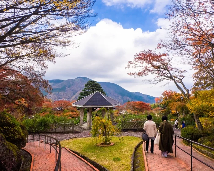 Kävelyetäisyydeltä löytyy muun muassa Hakone Gora -puisto, kauniisti suunniteltu puutarha, jossa on terasseja, suihkulähteitä ja näkymät vuorille. Siellä voit kävellä rauhassa kukkien, kasvihuoneiden ja pienten paviljonkien lomassa tai istahtaa nauttimaan hiljaisuudesta päivän matkan jälkeen. Kannattaa myös vierailla Hakonen taidemuseossa, joka tunnetaan hienosta japanilaisen keramiikan kokoelmastaan sekä upeista puutarhoistaan – erityisesti sammalpuutarha luo rauhallisen ja ainutlaatuisen tunnelman.
