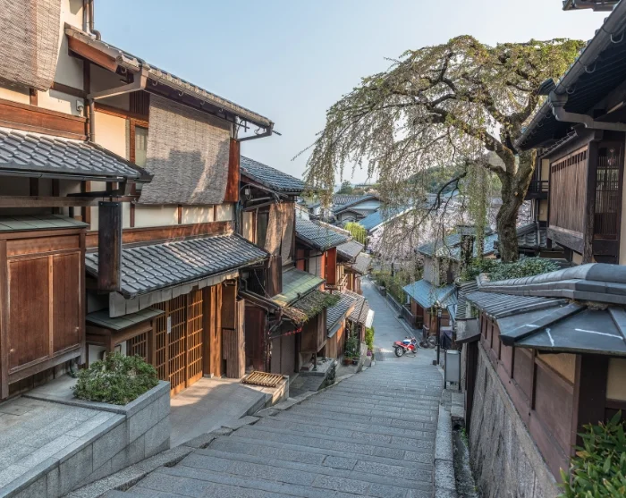 Hyvä aloituspaikka on Kiyomizudera-temppeli Itä-Kiotossa, joka on parhaimmillaan aikaisin aamulla. Koe, kuinka yksi kaupungin tunnetuimmista maamerkeistä kohoaa vaikuttavasti puuterassin varassa ja tarjoaa upeat näkymät kaupungin ylle. Jatka matkaa kapeita kujia pitkin romanttisessa Higashiyaman kaupunginosassa, jossa perinteiset puutalot, pienet liikkeet ja teetalot luovat lumoavan tunnelman ja vievät mielen vanhan Japanin aikaan. Vierailet Kōdaiji-temppelissä, jonka elegantti japanilainen puutarha hurmaa rauhallisuudellaan, ja nautit Yasaka-pyhäkön sekä läheisen Maruyama-puiston levollisesta ilmapiiristä, ennen kuin päätät kierroksen elegantissa geishakorttelissa Gionissa.