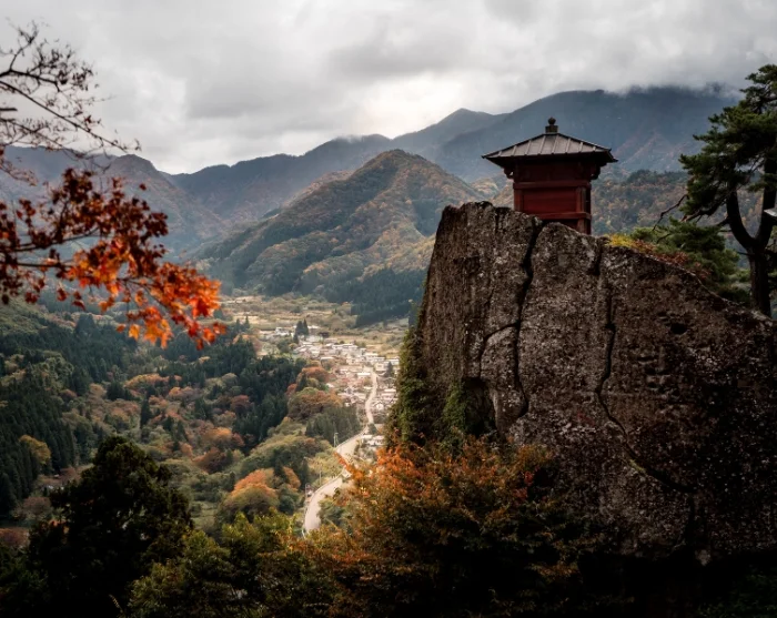 Asemalta lähdet kävellen kohti Yamaderan temppeliä, joka kohoaa dramaattisesti vuorenrinteellä. Polku kulkee satoja kivisiä portaita pitkin, joita munkit ja pyhiinvaeltajat ovat vuosisatojen ajan tallanneet. Portaat kiemurtelevat satumaisessa maisemassa korkeiden setripuiden keskellä, ja ympärillä vallitsee lähes rikkumaton rauha. Matkan varrella ohitat pieniä, sammaleen peittämiä pyhäkköjä ja näköalapaikkoja, joilla voi pysähtyä hengähtämään ja antaa katseen levätä lumoavassa maisemassa.