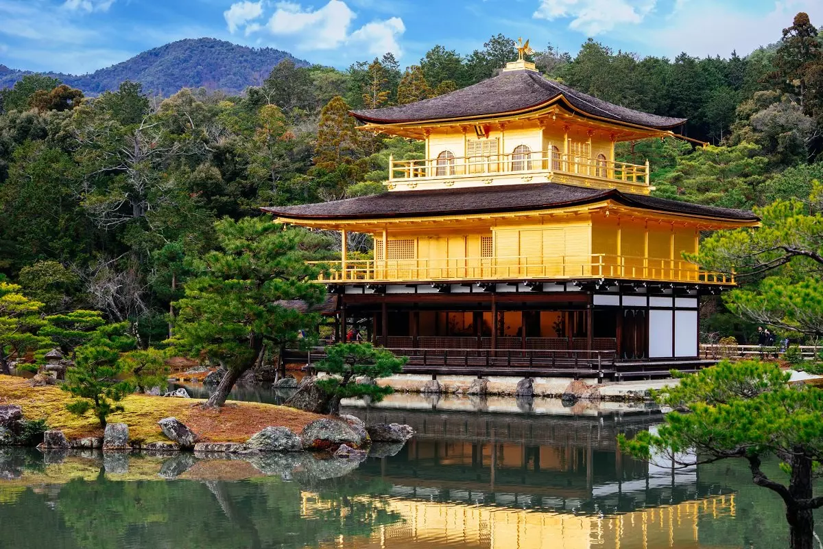 Kiotossa sijaitsee useita ikonisia temppeleitä ja pyhäkköjä. Ehkä tunnetuin niistä on Kultainen paviljonki, Kinkakuji, joka heijastuu kauniisti ympäröivän lammen pintaan. Tämä elegantti rakennus kuuluu Kioton kuvatuimpiin nähtävyyksiin ja näkymä on erityisen vaikuttava auringon osuessa kultaiseen julkisivuun.