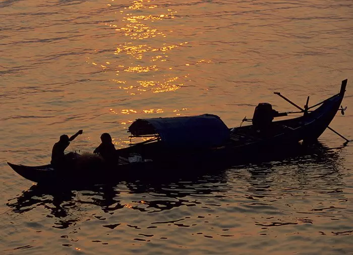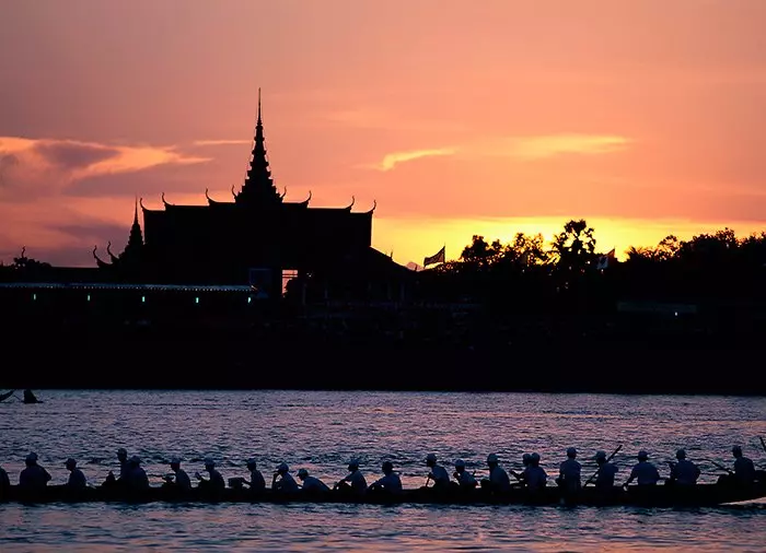 Nouse viehättävään jokilaivaan, jonka kyydissä pääset seuraamaan jokivarren elämää naisten hoitaessa päivittäisiä askareitaan ja lasten leikkiessä vedessä heidän ympärillään. Katsele pieniä kalastajaveneitä, kun ne saapuvat laituriin pitkän päivän päätteeksi. Kun aurinko laskee ja värjää taivaan lämpimillä sävyillä, voit nauttia viileän drinkin ja ihastella iltataivasta vasten piirtyvää kaupungin horisonttia, jossa erottuvat kaunis kuninkaallinen palatsi, Hopeapagodi ja Wat Ounalom. Jokiristeily keskustan ihmisvilinän ulkopuolella tarjoaa erilaisen ja rauhallisemman näkymän kaupunkiin. Laivalta voi ostaa juomia ja pikkupurtavaa. Matka kestää noin 1 tunti ja 15 minuuttia, ja sinut noudetaan hotelliltasi ja tuodaan takaisin.