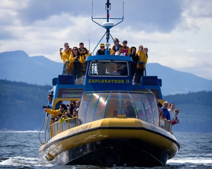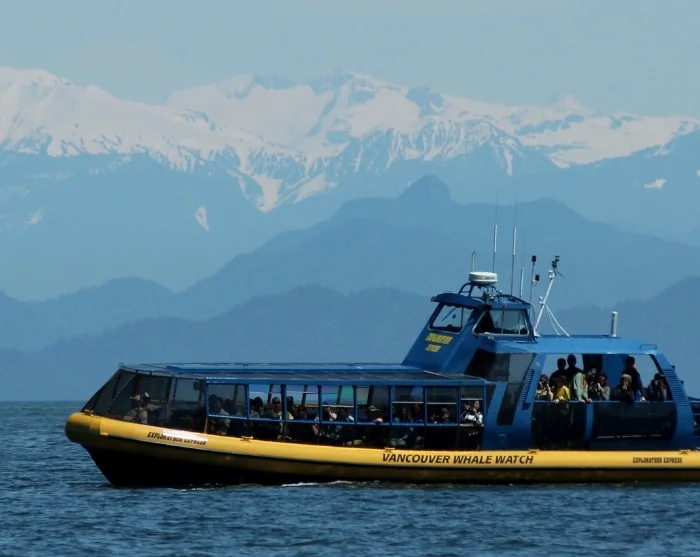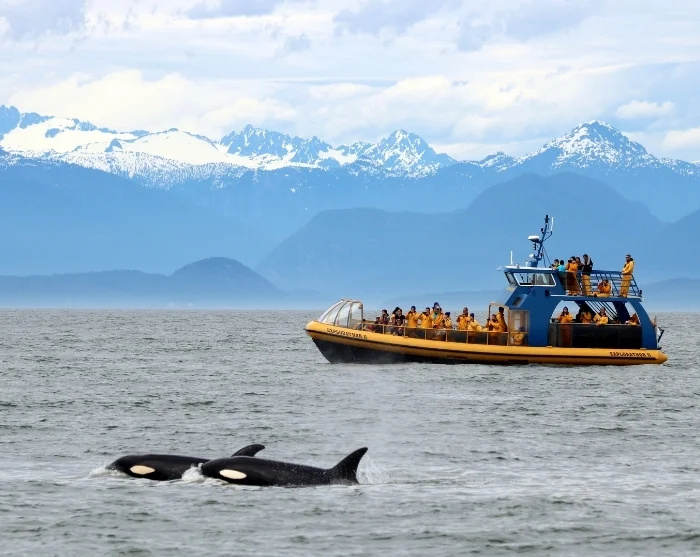Viimeistele Kanadan-seikkailu henkeäsalpaavalla kohtaamisella merten jättiläisten kanssa, joita esiintyy runsaasti Kanadan Tyynenmeren rannikolla. Lähde merelle jännittävälle retkipäivälle, jonka aikana valaan näkemisen todennäköisyys on 90 %.