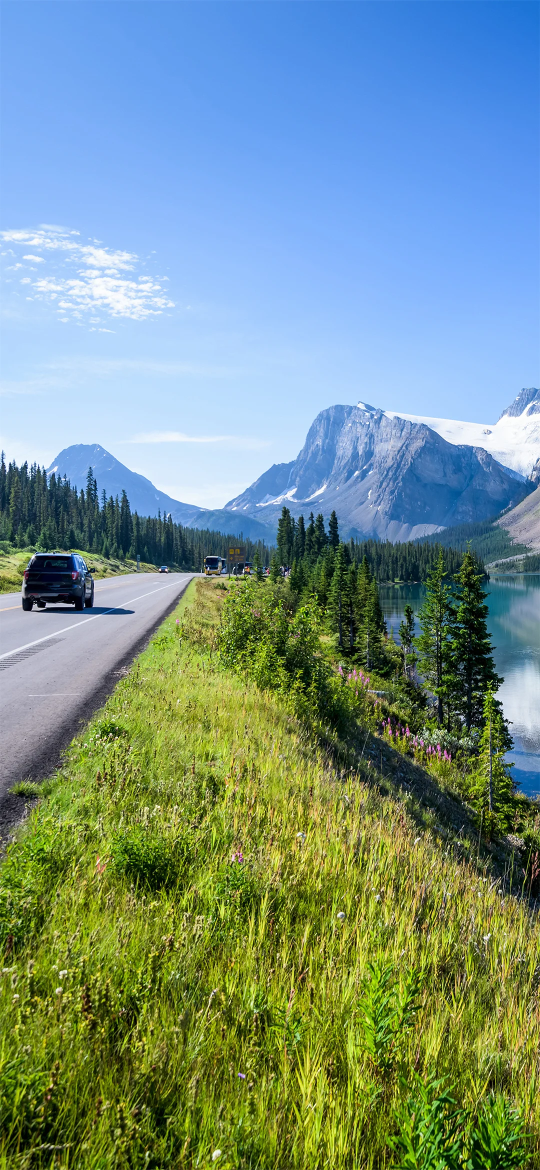 Ajettuasi tunnin verran Jasperista näet horisontissa vuorenhuipun, joka vangitsee varmasti huomiosi. Kyseessä on Mount Robson, Kanadan Kalliovuorten korkein vuori. Halutessasi voit käydä Mount Robson Caféssa kahvitauolla, jota et hetkessä unohda! Nauti rauhallisesta ajelusta ja henkeäsalpaavista näköaloista jylhille vuorille.