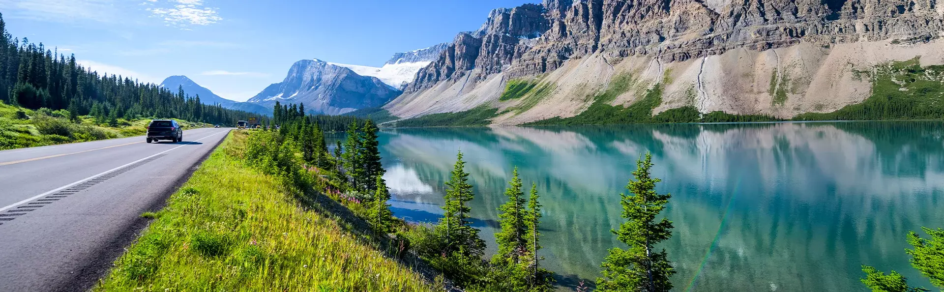 Maisemat muuttuvat mäkisistä majesteettisiksi, kun huristelet hieman vähemmän tunnettujen kansallispuistojen – Revelstoken, Glacierin ja Yohon – kautta kuuluisaan Banffiin. Matkalla nautit Kanadan upeista kontrasteista ja näet smaragdinvihreitä järviä, lumisia vuorenhuippuja ja hirsimökkejä – ja paljon muuta.