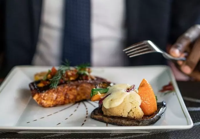 Ateriat nautitaan lodgen omassa ravintolassa. Suuri osa vihanneksista kasvatetaan paikan päällä, ja kaikki annokset valmistetaan alusta asti itse.