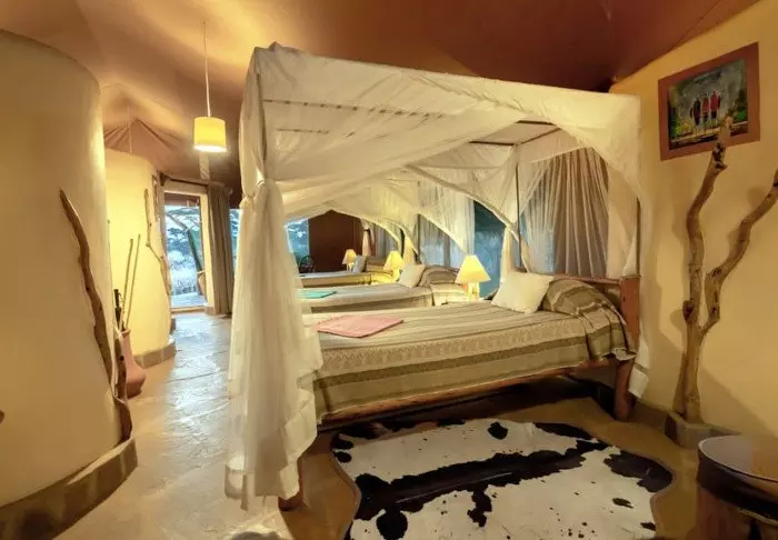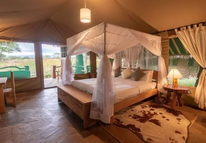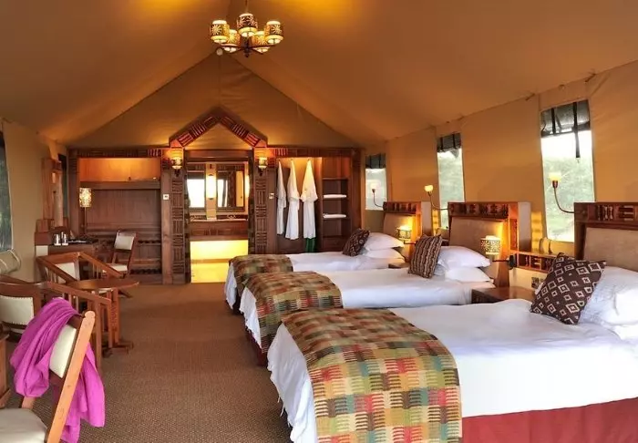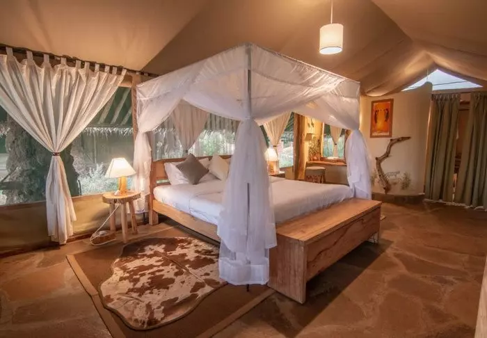 Teltat ovat suuria ja tyylikkäästi sisustettuja. Vuoteissa on oikeat tyynyt ja pehmeät puuvillalakanat. Myös masaikulttuuri näkyy sisustuksessa, kuten värikkäissä seinävaatteissa ja käsintehdyissä kalusteissa. Kaikki telttaseinät ovat kangasta – myös kylpyhuoneen. Kylpyhuoneessa on silti oikea WC-istuin, juokseva vesi ja suihku, joten vaikka asut teltassa ja voit kuulla ja haistaa heti kangasseinän ulkopuolelta alkavan savannin, et joudu tinkimään mukavuuksista. Jokaisen teltan edessä on oma pikku ”kuisti”, jossa on safaripöytä ja -tuolit. Viihtyisällä kuistilla tulet varmasti viettämään tunnin ja toisenkin ympäröivää luontoa ihastellen.