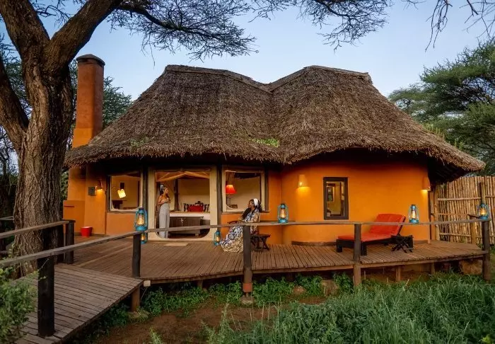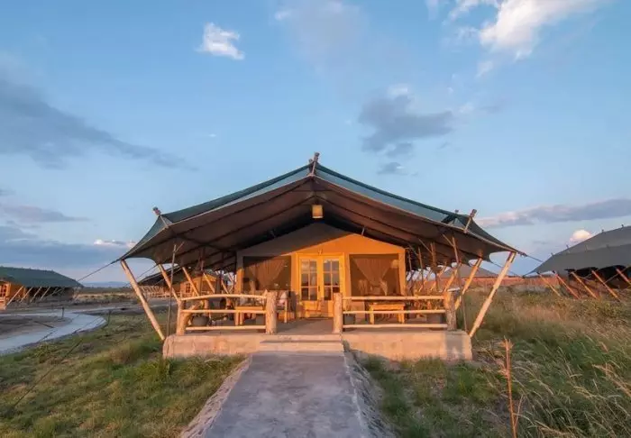 Olengoti Safari Campiin kuuluu itse asiassa kaksi leiriä: klassinen afrikkalainen telttaleiri sekä luksusmökeistä koostuva leiri.