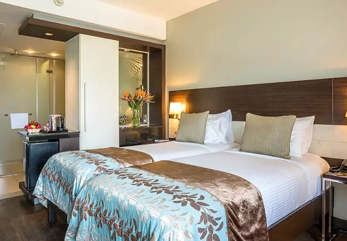 Hotelli on suunniteltu lähes pieneksi kompleksiksi, jonka keskellä on puutarha, jonka toisessa päässä on uima-allas. Täältä löydät aurinkotuolit ja niiden vierestä viehättävän baarin. Hotellissa on myös kolme ravintolaa, oleskelualue ja kuntosali – ja mikä parasta, se on vain 15 minuutin ajomatkan päässä lentokentältä, mikä tekee siitä täydellisen paikan viettää yö matkan alussa tai ennen kotiinpaluuta.