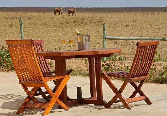 Viihtyisä leiri sijaitsee aivan Amboselin kansallispuiston ulkopuolella ja tarjoaa upean näköalan Kilimanjarolle.