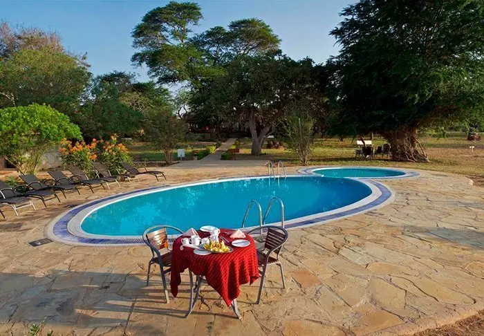 Leiriin kuuluu myös viihtyisä uima-allas, jossa on erityisen mukava virkistäytyä siksi, että tässä osassa Keniaa on varsin kuuma ja kuiva ilmasto. Leirin ravintolasta avautuu hieno näköala ympäröivään luontoon.