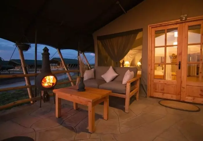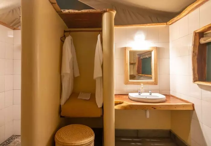 Jokaisessa teltassa on tuuletin, juomavesiannostelija ja sängyissä hyttysverkot. Matkatavaroille on hyvin tilaa, ja teltassa on myös viihtyisä lukukulmaus. Verannalla on mukavat istumapaikat, jotka sopivat erinomaisesti viinin nauttimiseen ja auringonlaskun ihailemiseen Afrikan savannin yllä.