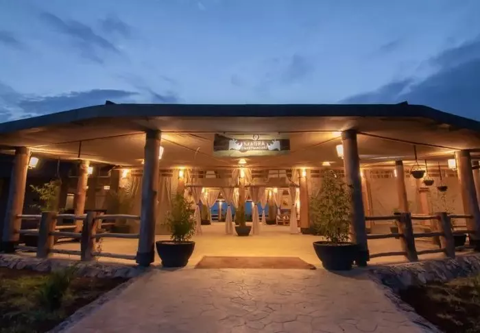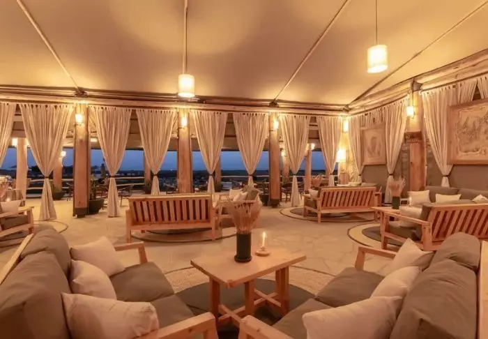 Voi kuitenkin olla vaikeaa irrottautua baarin lämpimästä ilmapiiristä. Sieltä löydät pehmeät sohvat, upeat näkymät, WiFi:n, erinomaisia juomia ja kodikkaan tunnelman. Ravintola ei ole kaukana, ja se on yhtä viehättävästi sisustettu kuin muu leiri. Ruoka on todella herkullista – voit esimerkiksi luoda oman pizzan, joka paistetaan kiviuunissa.