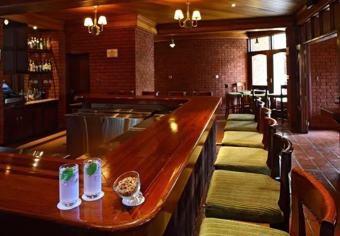 Baari ja ravintola ovat viihtyisiä ja kutsuvia. Asiakkaiden käytössä on pehmeitä sohvia ja viihtyisiä oleskelunurkkauksia, ja kuten teltoissakin, niiden sisustuksessa on käytetty luonnonmateriaaleja, kuten puuta ja kiveä. Värit ovat hillittyjä, jotta pääpaino olisi luonnossa.