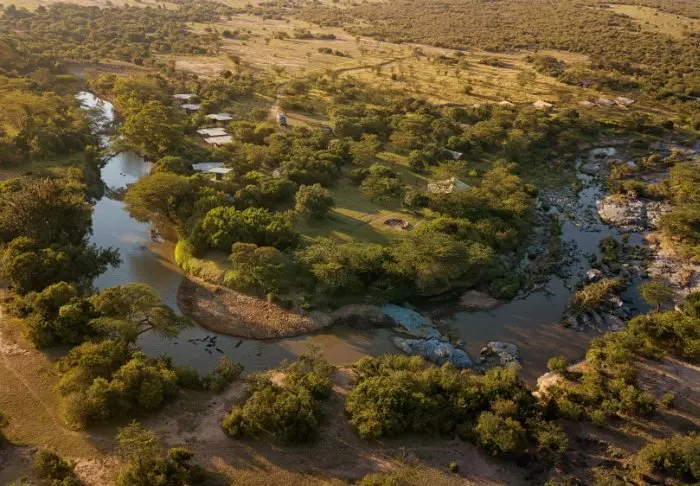 Yhteensä 11 luksusteltasta ja 6 luksusmökistä koostuva Olengoti Eco Safari Camp sijaitsee aivan Talek-joen rannalla.