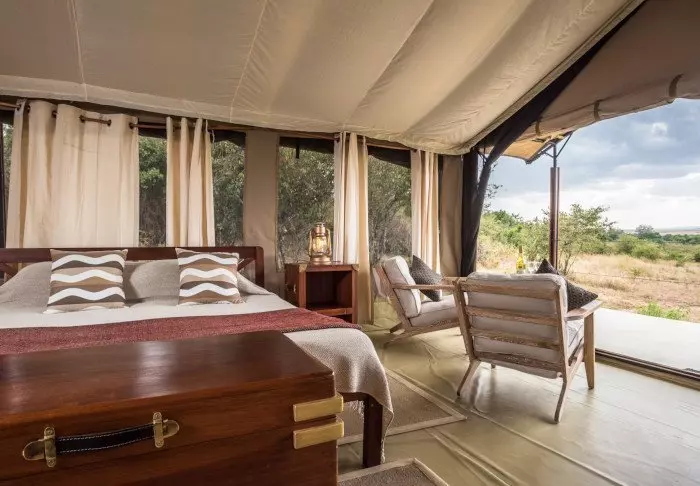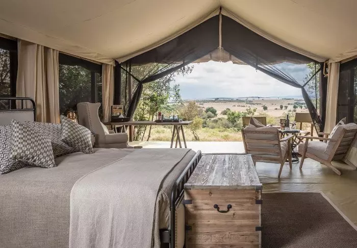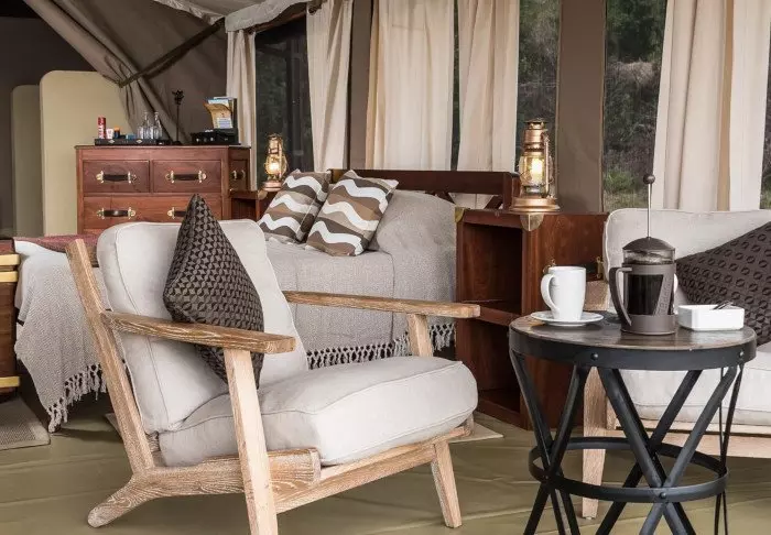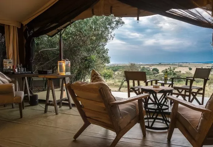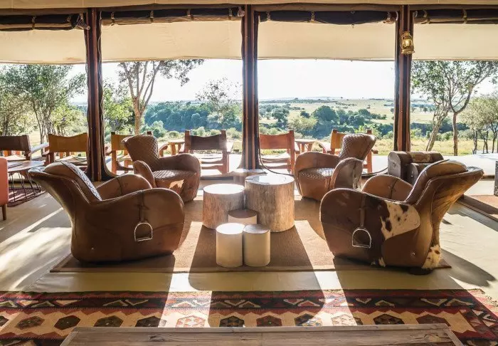 Istuessasi mukavassa tuolissasi kupillinen kahvia kädessäsi saatat ehkä miettiä, miksi ihmeessä edes lähtisit tänään safariajelulle. Kaikki on nimittäin jo täällä. Edessäsi avautuvat upeat näköalat joen yli Masai Maran tasangoille, ja tasaisin väliajoin yksi tarjoilijoista käy kysymässä, tarvitsetko kenties jotain.