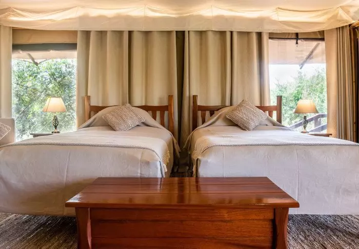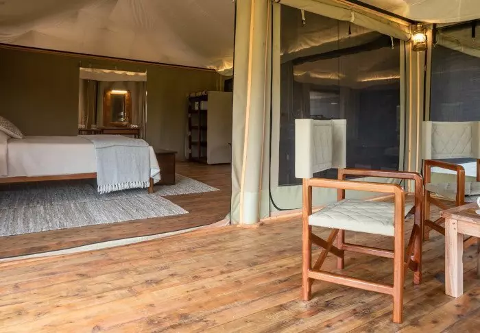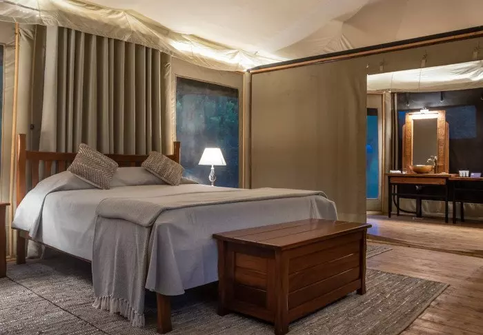 Oikeastaan niitä ei pitäisi kutsua ”teltoiksi”, sillä kyse on pikemminkin ”sviiteistä”. Seinät ovat kangasta, joten voit sekä kuulla että haistaa ympäröivän luonnon, mutta kaikki muu on aivan kuin 5 tähden luksushotellissa.