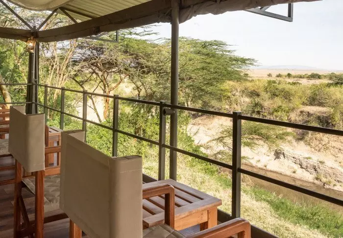Telttoihin kuuluu luonnollisesti oma kylpyhuone, jonka suihkusta on näköala ulos.
