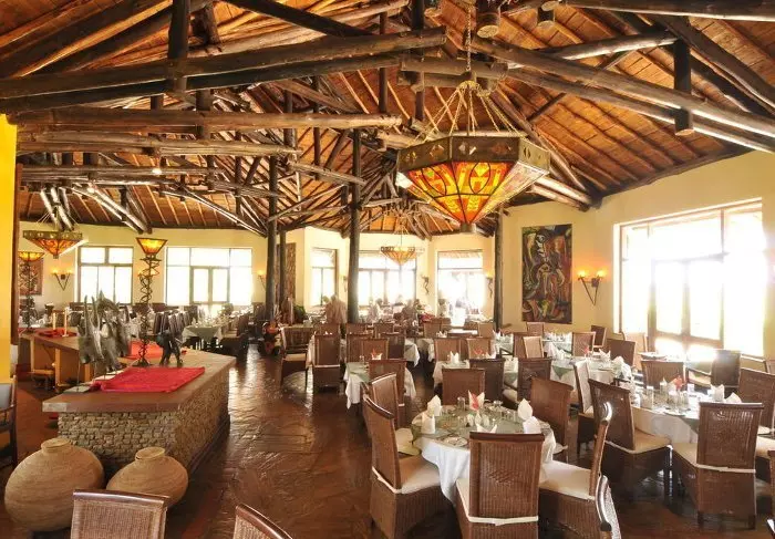 Näköalan lisäksi lodgen vetonauloihin kuuluvat sen viihtyisät yhteiset tilat. Nauti baarissa kylmä juoma, hyppää uima-altaaseen ja nauti samalla hienoista näköaloista Kilimanjarolle!