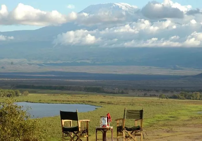Auringonlaskun aikaan voit hyvällä tuurilla päästä nappaamaan klassisen otoksen norsuista, jotka piirtyvät viimeisissä auringonsäteissä kylpevää Kilimanjaroa vasten kuin pienet kallionkielekkeet.