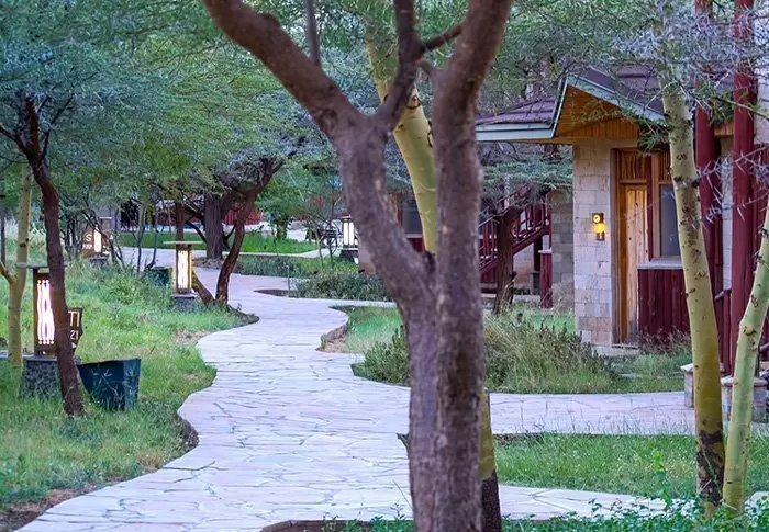 Lodge koostuu 7 pienistä kaksikerroksista ”taloista”, joissa jokaisessa on 10 huonetta. Huoneet ovat sisustettu mukavaan afrikkalaiseen tyyliin. Kaikissa huoneissa on oma kylpyhuone, kattotuuletin, tee- ja kahvinkeittotarvikkeet ja kaikkein tärkein: suuri terassi tai parveke tasangon eläinten katseluun.