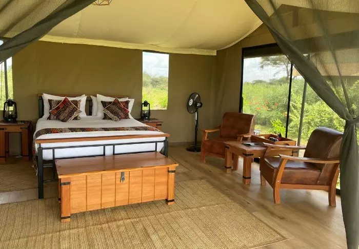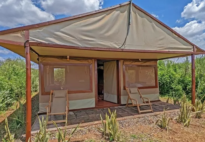Leiriin kuuluu 29 tilavaa ja hyvin sisustettua telttaa. Teltoissa ei ole turhia hienouksia, mutta kaikkea on kuitenkin ajateltu. Kaikissa teltoissa on oma veranta – joissakin jopa oma uima-allas – ja kaikista teltoista on näköala Kilimanjarolle.