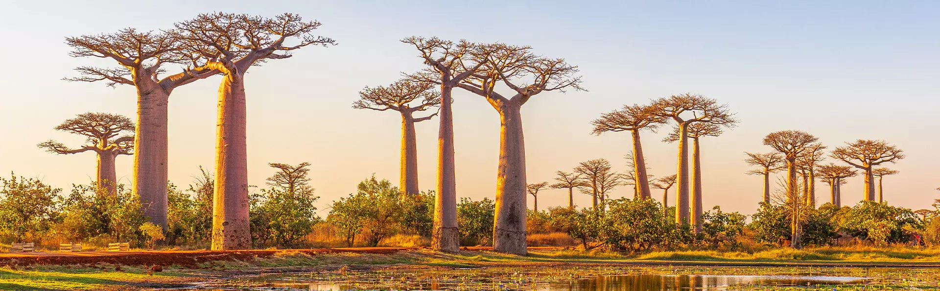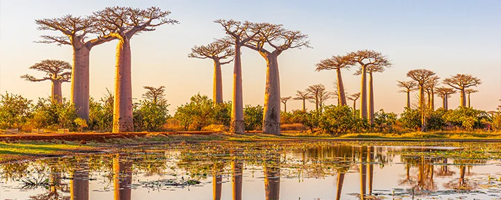 Paluumatkalla Morondavaan ohitat jälleen kauniit apinanleipäpuut, ja hyvällä onnella saat nauttia vielä yhdestä auringonlaskusta.