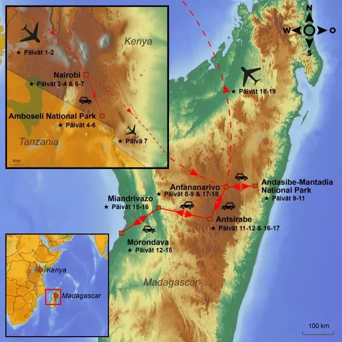 Tämä matka vie sinut ensin Kenian legendaariseen Amboselin kansallispuistoon, missä seikkailet safarilla Kilimanjaron maisemissa, ja sitten Madagaskarin lumoaviin sademetsiin, jotka vilisevät uniikkeja eläimiä.