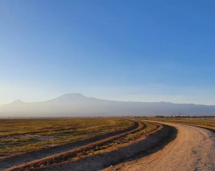 Kilimanjaro näkyy suurimman osan ajomatkasta Itä-Tsavosta Länsi-Tsavoon, ja on hauskaa nähdä, miltä vuori näyttää tältä puolelta verrattuna Amboseliin. Huomaa esimerkiksi, kuinka Mawenzi Peak näyttää lähes korkeammalta kuin Kibo, jossa sijaitsee Uhuru Peak (Kilimanjaron korkein kohta). Se on optinen harha. Uhuru Peak on korkein kohta.