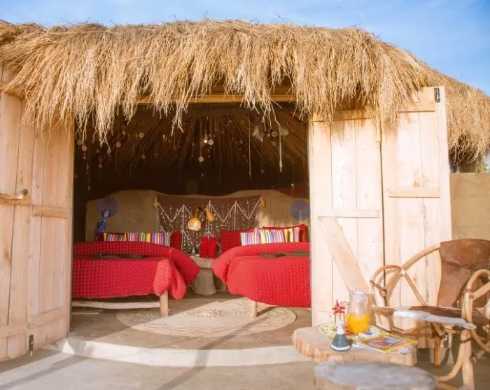 Maasai tulee nukkumaan mennessä mukanasi mökille. Suosittelemme, että jätät oven raolleen, jotta olet valmis auringonnousuun. Halutessasi voit pyytää kupillista kahvia mökkiisi auringonnousun aikaan.