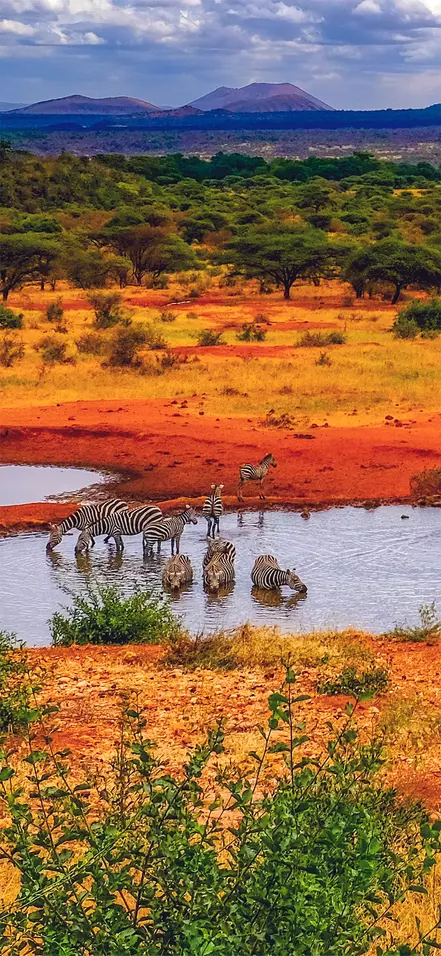 Tsavon läntisen puoliskon maisema on uskomattoman monipuolinen ja vaihtelee kosteikoista ja luonnonlähteistä muinaisten tulivuorien jälkeensä jättämään mäkimaastoon ja luonnonkauniiseen kasvillisuuteen.