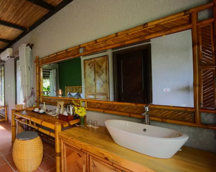 Ympäristöstä huolehtiminen näkyy päivittäisessä toiminnassa. Mai Chau Ecolodge käyttää uusiutuvia energialähteitä, kuten aurinkoenergiaa ja riisinkuoribiomassaa, ja panostaa resurssien harkittuun käyttöön arjessa. Muovin käyttöä on vähennetty merkittävästi esimerkiksi paperipillien, keraamisten säilytysastioiden ja uudelleentäytettävien lasipullojen avulla. Kaikki jätevedet käsitellään vastuullisesti: vesi puhdistetaan ennen kuin se johdetaan takaisin luontoon, jotta ympäristö ei kärsi.