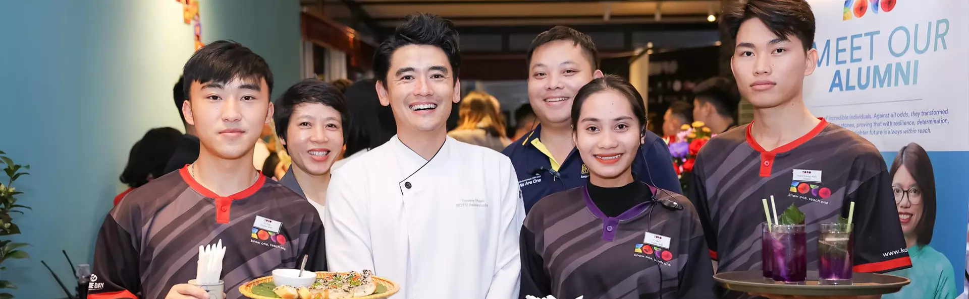 Hanoissa, Vietnamissa, tuemme KOTO-ravintolaa, jonka on perustanut australialais-vietnamilainen kokki Jimmy Pham vuonna 1999. Hän oli itse nähnyt, kuinka nuorilla Vietnamissa puuttui mahdollisuudet koulutukseen ja työhön. Tavoitteena oli antaa haavoittuvassa asemassa oleville nuorille aito mahdollisuus elämään. Monet KOTOn nuorista ovat kokeneet köyhyyttä, koulunkäynnin puutetta tai epävakaita perhesuhteita, ja heidän mahdollisuutensa rakentaa tulevaisuuttaan itsenäisesti ovat olleet rajalliset.