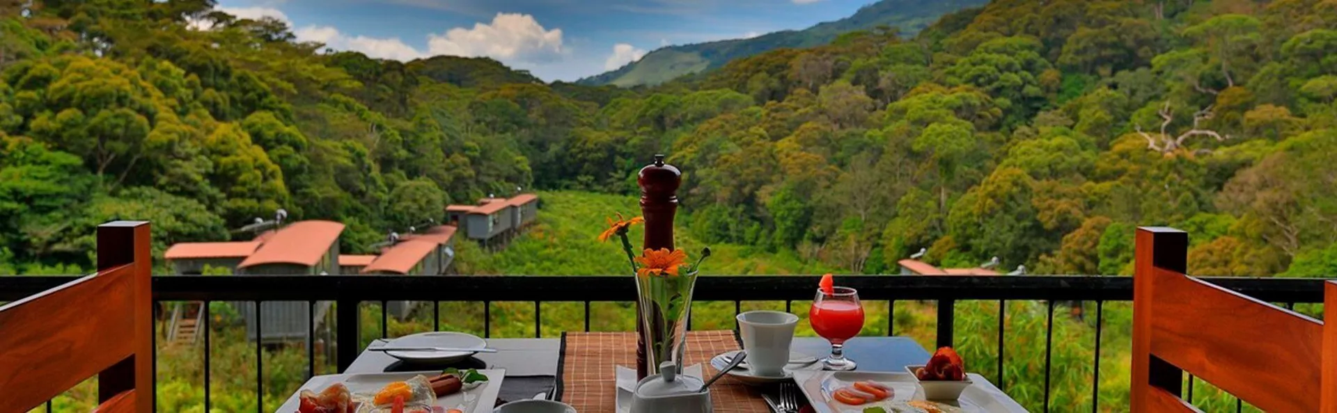 The Rainforest Eco Lodge sijaitsee keskellä vehreää srilankalaista teeviljelmää.