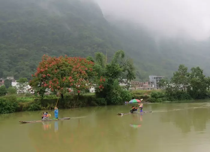 Lähde rauhalliselle, verkkaiseen tahtiin etenevälle rafting-jokiretkelle Yulongjoelle, joka on Guilinista Yangshuoon virtaavan Lijoen sivujoki.