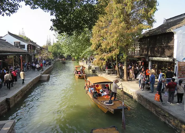 Kuljettaja ja opas noutavat sinut hotelliltasi. Ajatte yhdessä kohti vanhaa Zhujiajiaon kanavakaupunkia, jonka historia ulottuu yli 1700 vuoden taakse. Zhujiajiao sijaitsee Suzhoun ja Shanghain välisellä alankoalueella, jossa on paljon järviä ja jokia. Kaupunkia halkovat monet kanavat, joita ennen vanhaan käytettiin tekstiilituotannossa ja riisinviljelyssä. Kanavia käytetään edelleen liikenneväylinä, ja siksi kaupunkia kutsutaankin Kiinan Venetsiaksi.