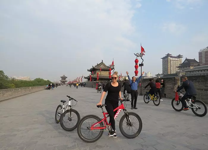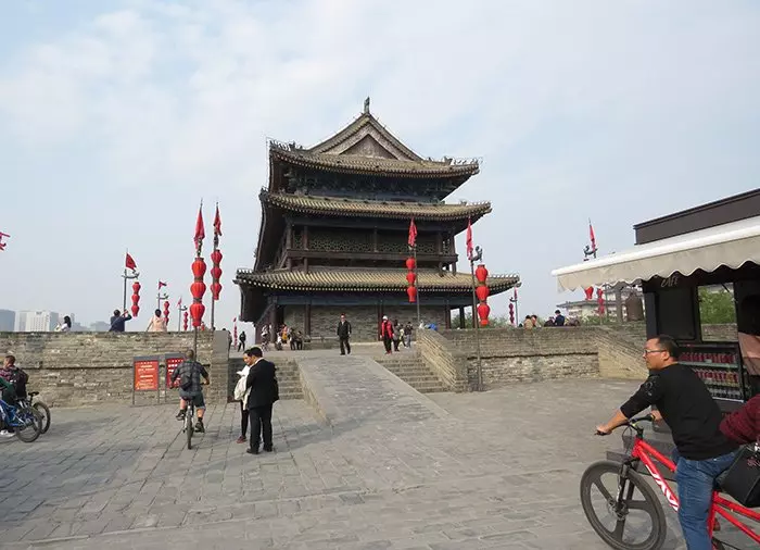 Yhteensä 13,7 kilometriä pitkää kaupunginmuuria koristavat upeat punaiset lyhdyt ja vanhat vartiotornit. Pyöräretkellä saat hyvän käsityksen Xi’anin kaupunkiarkkitehtuurista ja pääset näkemään kaupungin aivan erilaisesta perspektiivistä – nimittäin 12 metrin korkeudesta.
