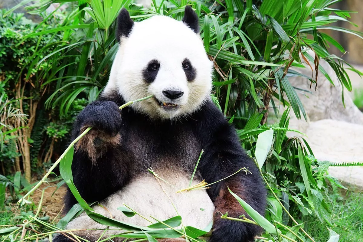 Panda käyttää päivästään jopa 15 tuntia syömiseen. Bambu ei kuitenkaan ole kovin ravintorikas kasvi, joten aikuisen pandan on syötävä päivittäin 15-20 kiloa. Huomaatkin varmasti pian, että aikuiset pandat ovat hyvin rauhallisia muihin verrattuna, ja ne eivät käytännössä tee muuta kuin makaavat, nukkuvat tai syövät. Nuoremmilla pandoilla riittää vielä energiaa leikkiä ja härnätä toinen toisiaan!