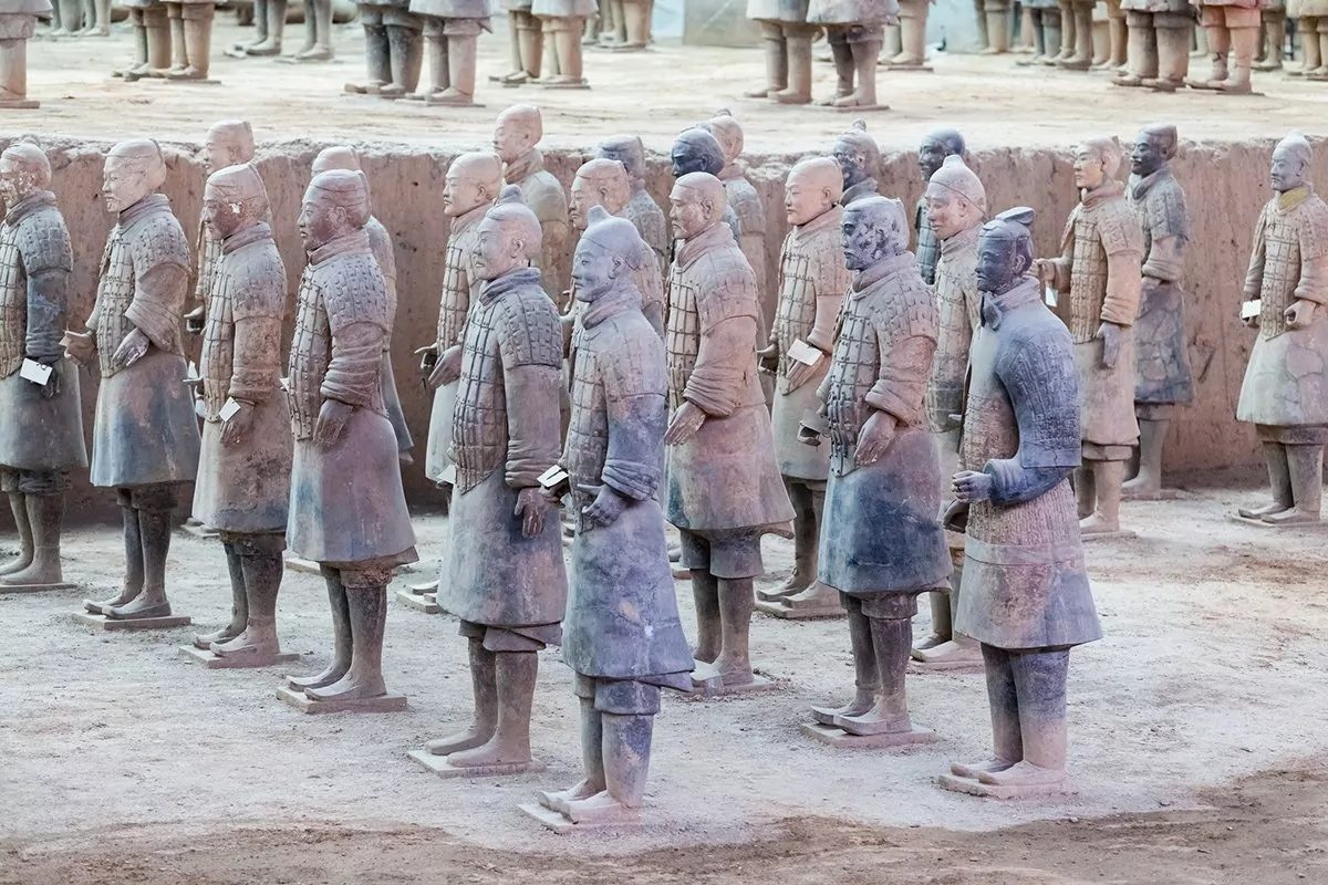 Sinut noudetaan hotellilta, josta ajetaan kohti Terrakotta-armeijaa, joka on yksi matkan ehdottomista kohokohdista. Vuonna 1974 kiinalaiset maanviljelijät löysivät kaupungin ulkopuolelta palasia ihmisen kokoisesta patsaasta. Kaivauksia jatkamaan kutsuttiin arkeologeja, jotka kaivoivat esiin historian suurimman maanalaisen patsaskokoelman: peräti 7000 savesta muovattua soturia, hevosta ja vaunua. Soturit ovat 175-190 cm pitkiä ja kaikki keskenään erinäköisiä: kullakin terrakottasoturilla on yksilölliset kasvot, kampaus ja puku. Ne seisovat rivissä valmiina puolustamaan keisari Qin Shi Huangdin hautapaikkaa. Sanotaan, että soturit veistettiin suojelemaan hallitsijaansa tuonpuoleisessa.