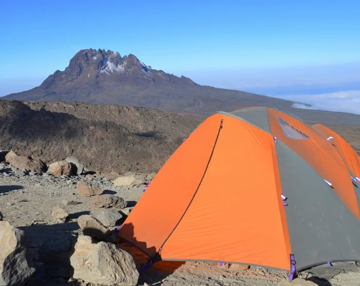 Yöpyminen tapahtuu aina teltoissa, paitsi Marangu-reitillä, jossa majoitutaan alkeellisissa vuoristomajoissa.