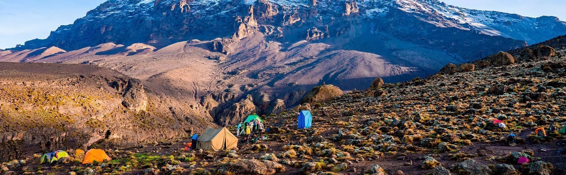 Vaikuttavan Great Barranco Wallin kupeessa vietetyn yön jälkeen nautitaan tukeva aamiainen ja lähdetään nousemaan tätä kuuluisaa jyrkännettä. Kaikeksi onneksi jylhän jyrkänteen kiipeäminen on helpompaa kuin miltä näyttää. Verhomaisen Heim-jäätikön alta Kilimanjaron henkeäsalpaava maisema avautuu koko komeudessaan.