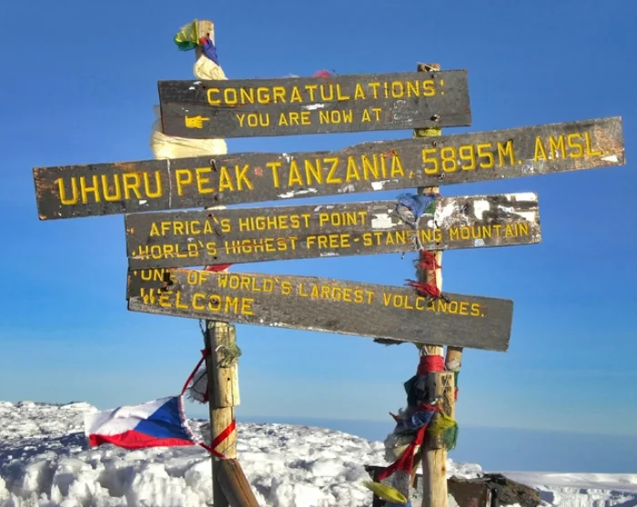 Tansanian savannin ympäröimä Kilimanjaro on Afrikan korkein vuori, jonka huippu kohoaa 5895 metriä merenpinnan yläpuolelle. Tavoitteena on saavuttaa vuoren korkein kohta eli Uhuru Peak. Sinun ei tarvitse olla vuorikiipeilijä valloittaaksesi tämän majesteettisen vuoren. Riittää, että sinulla on hyvä yleiskunto, asialliset varusteet ja rautainen tahto. Usein motivaatioksi riittää jo se, että voit reissun jälkeen kehuskella kiivenneesi Afrikan korkeimmalle vuorelle.