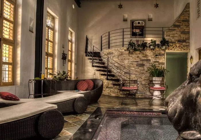 Hotellin pienestä ulkoilma-spasta on mahdollista varata erilaisia hierontoja ja hoitoja.