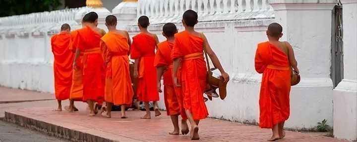 Luang Prabangin keskusta toimii näyttämönä ainutlaatuiselle rituaalille, joka tapahtuu varhain joka aamu. Yli 300 munkkia vaeltaa aamunkoitteessa hiljaisuuden vallitessa pitkin kaupungin katuja keräten almuja paikallisilta asukkailta. Perheet lähettävät jonkun jäsenistään kadun varrelle odottamaan munkkeja, joiden keräysastioihin he lahjoittavat almunsa ruoan tai juoman muodossa. Munkkikulkueen arvokkuus ja rituaalin kunnioittava hiljaisuus tekevät lähtemättömän vaikutuksen.