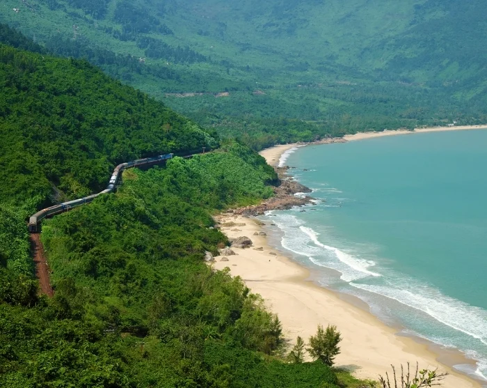 Heräät upeaan maisemaan, kun juna kiemurtelee rannikkoa pitkin ja kulkee luonnonkauniin Van Hai -solan läpi.